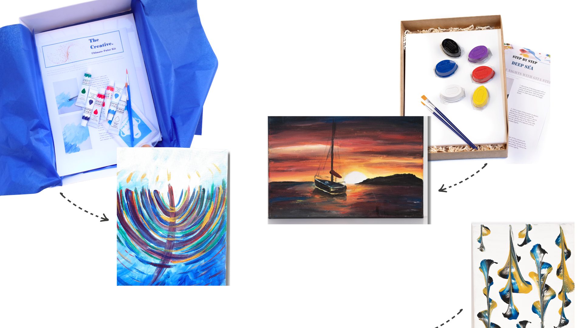 Paint at your own pace. Pause, rewind, relax. Most of these projects are enjoyed at motza shbs family time or date nights.
